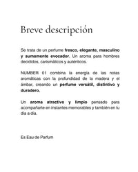 NUMBER 01 combina la energía de las notas aromáticas con la profundidad de la madera y el ámbar, creando un perfume versátil, distintivo y duradero.